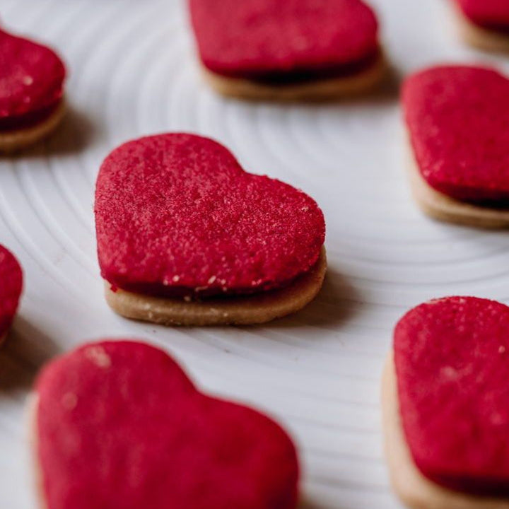 Unser Rotes Herz ist gefüllt mit einer fruchtigen Himbeer-Johannisbeere-Creme. Ein zartes Butter-Mürbe-Gebäck kombiniert mit leicht säuerlicher Füllung für alle, die mit Liebe genießen.